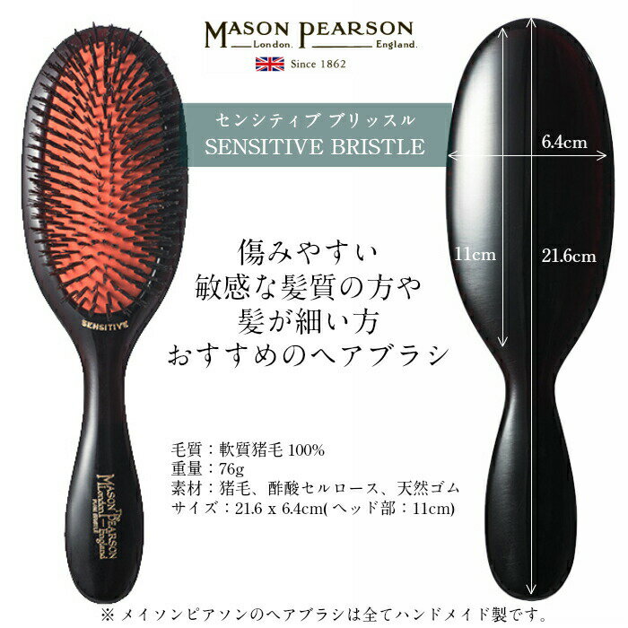 【国内正規取扱店】即日発送 メイソンピアソン MASON PEARSON ヘアブラシ クシ 櫛 【センシティブブリッスル】ダークルビー 【クリーニングブラシ付き】 猪毛 ヘアケア 美容 イギリス製 ハンドメイド 老舗 最高級 ギフト プレゼント 母の日 正規品