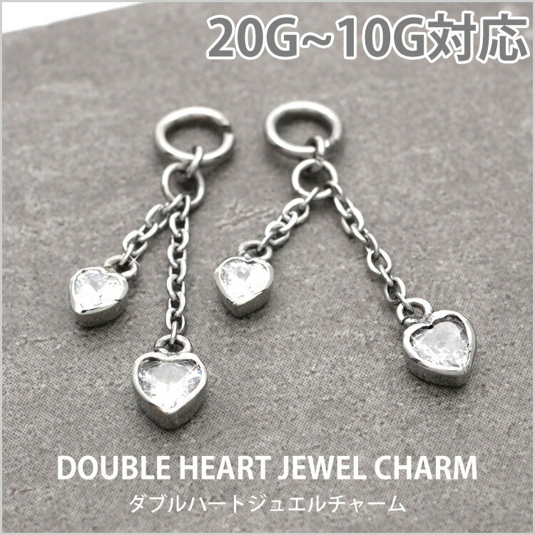 ボディピアスパーツ ダブルハートジュエルチャーム 20G 18G 16G 14G 12G 10G対応 バックキャッチ風 ピアスチャーム バックチャーム ボディーピアス クリスタル