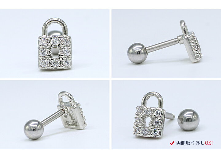 ボディピアス 16G 軟骨ピアス 316Lサージカルステンレス ストレートバーベル 南京錠 モチーフ キュービック ボディーピアス 軟骨用 ピアス ヘリックス トラガス 耳たぶ ストレートピアス なんこつピアス 耳 りん サージカルステンレス お買い物マラソン