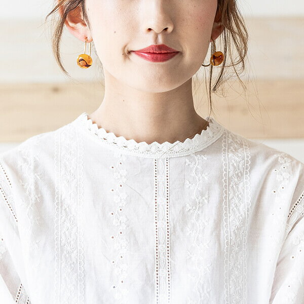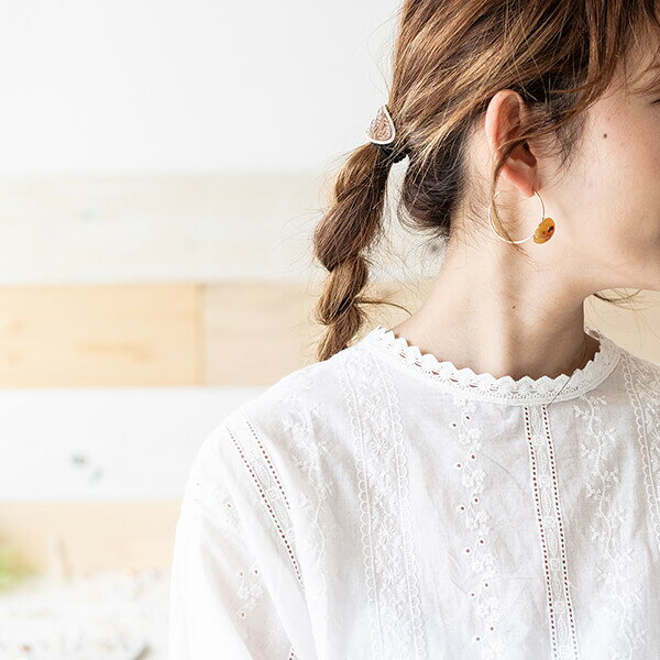 べっ甲風のモチーフがワンポイントになる他にはないフープピアス。