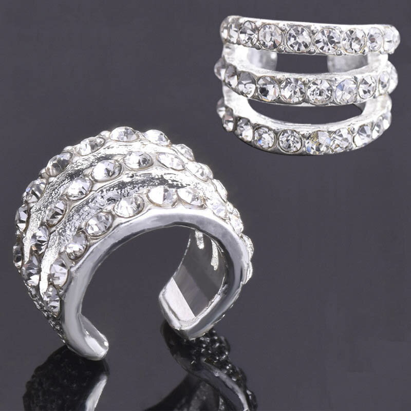 ジュエリー イヤーカフ クリスタル メンズ レディース シンプル 1個販売 イヤリング イヤークリップ フェイクピアス 耳 軟骨 キラキラ 挟む はさむ ラインストーン ゴールド シルバー ノンホールピアス ノンホール 痛くない 2次会 あけない 結婚式 パーティ パベ パヴェ