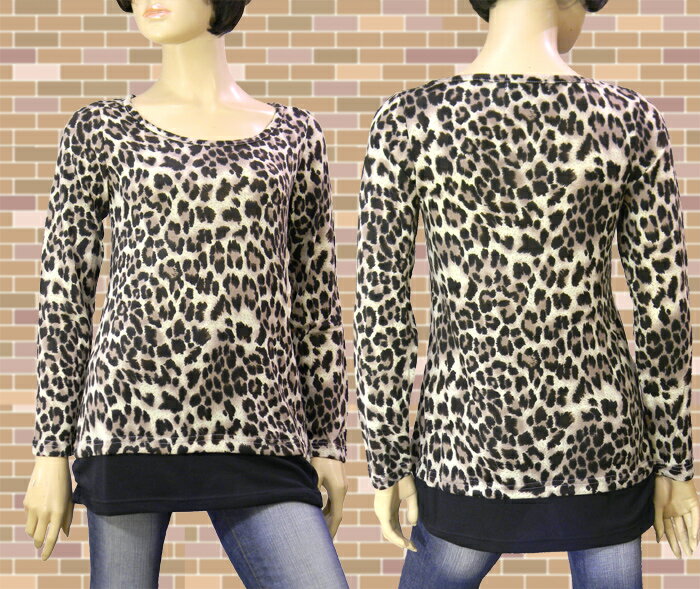 【メール便(ゆうパケット)送料無料】★チュニック丈★ヒョウ柄カットソー★