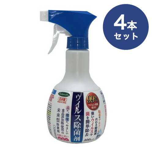 ウイルス除菌剤 400ml 4本組 微酸性次亜塩素酸水 ノンアルコール キッチン 衣類 食卓 衛生 掃除 ウイルス 除菌 スプレー 日本製(代引不可)【送料無料】