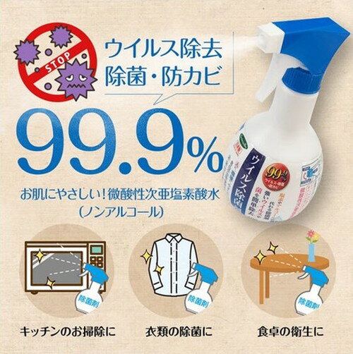 ウイルス除菌剤 400ml 4本組 微酸性次亜塩素酸水 ノンアルコール キッチン 衣類 食卓 衛生 掃除 ウイルス 除菌 スプレー 日本製(代引不可)【送料無料】